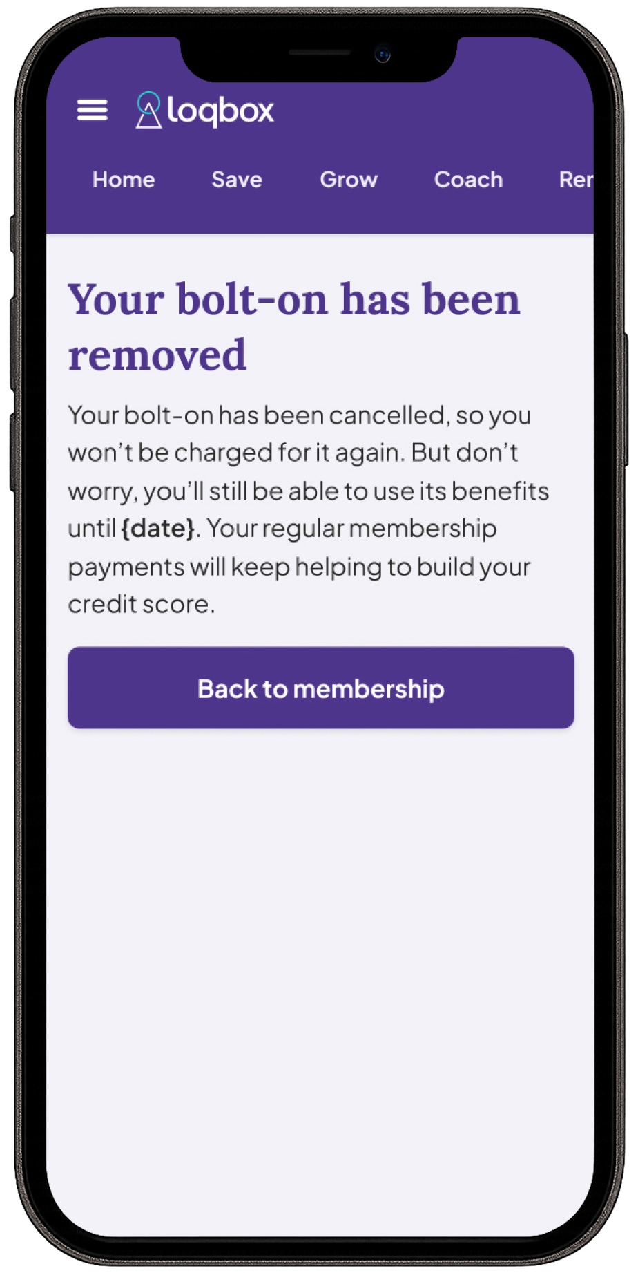 Note: A bolt-on is an optional add-on that gives customers additional account features such as higher savings limits or access to Loqbox’s financial wellbeing app, for an extra cost on top of their membership fee.