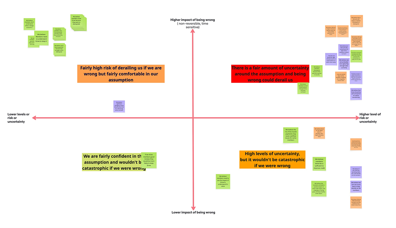 I started by organising and facilitating an assumption mapping workshop. We explored why customers might be cancelling and what might help retain them.
